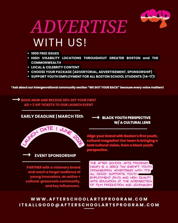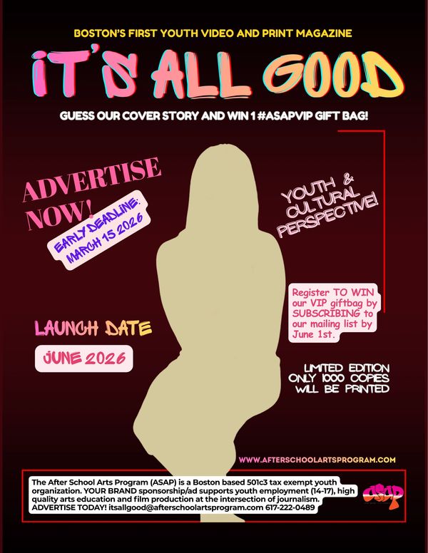 ASAP is excited to launch Boston's first YOUTH OF CULTURE Print and Video Magazine -- IT’S ALL GOOD an exclusive, limited edition magazine published by The After School Arts Program (ASAP), created for youth, by youth!